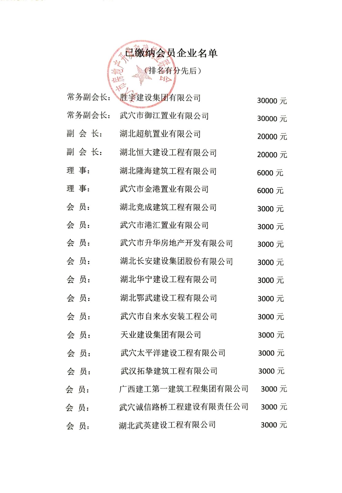 武穴市房地产开发和建筑业联合会2025年度会费缴纳情况公示